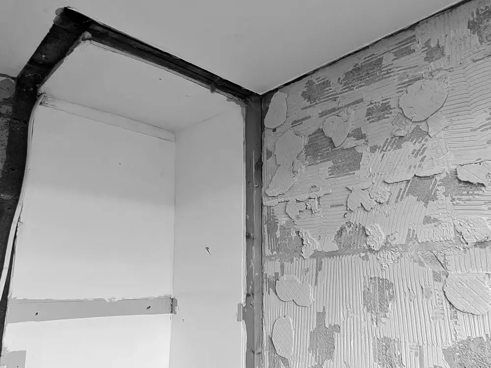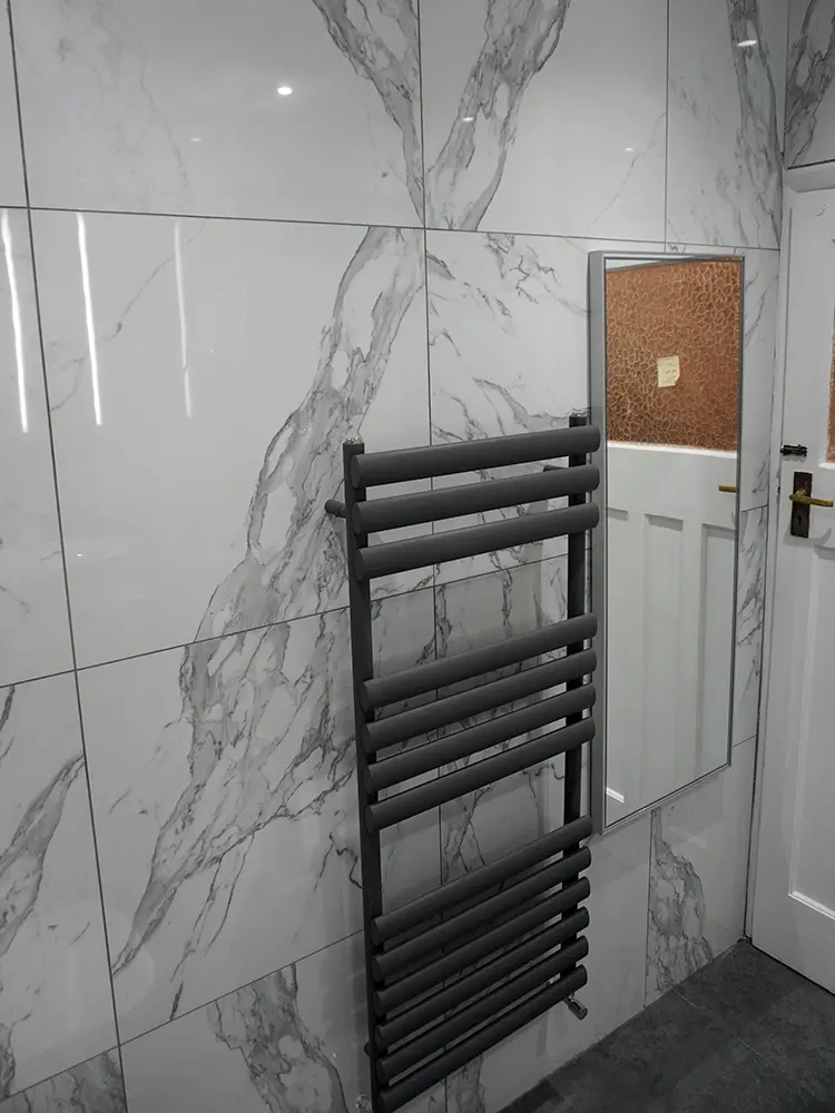 Heating pipework stripped out and rerouted beneath the floor for a concealed, clean finish.