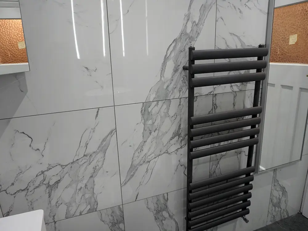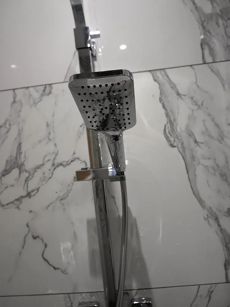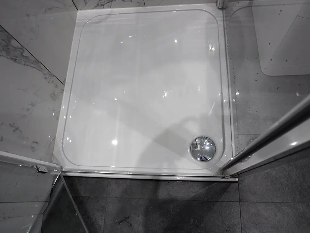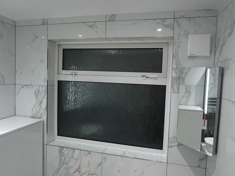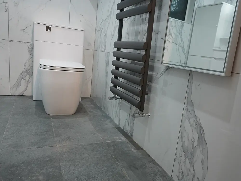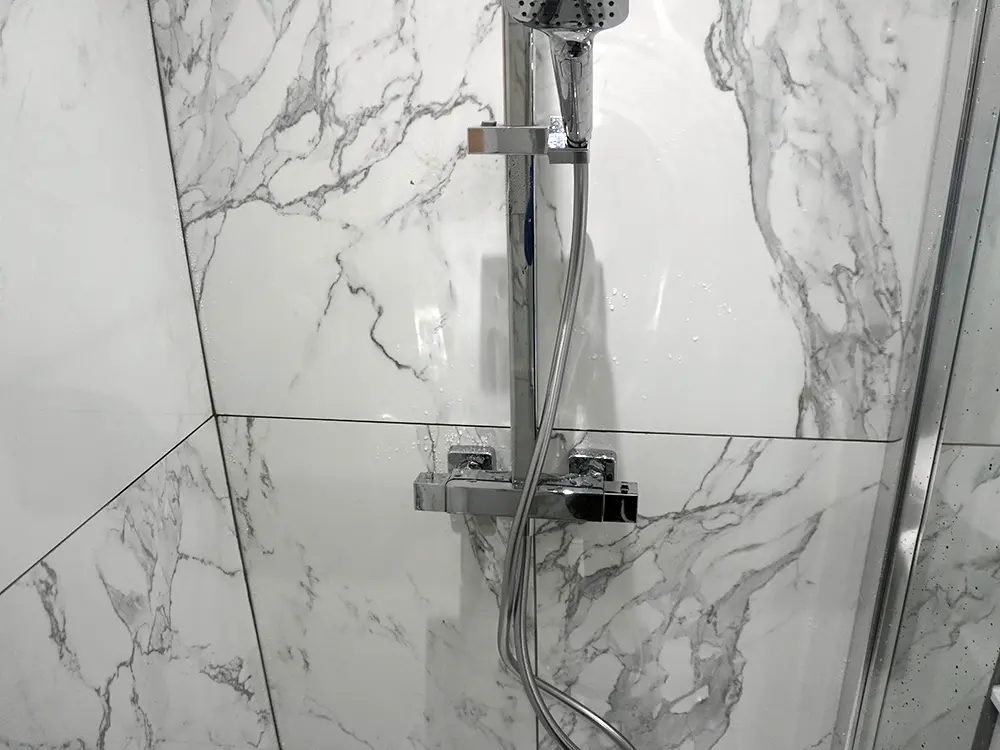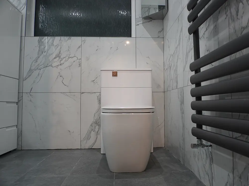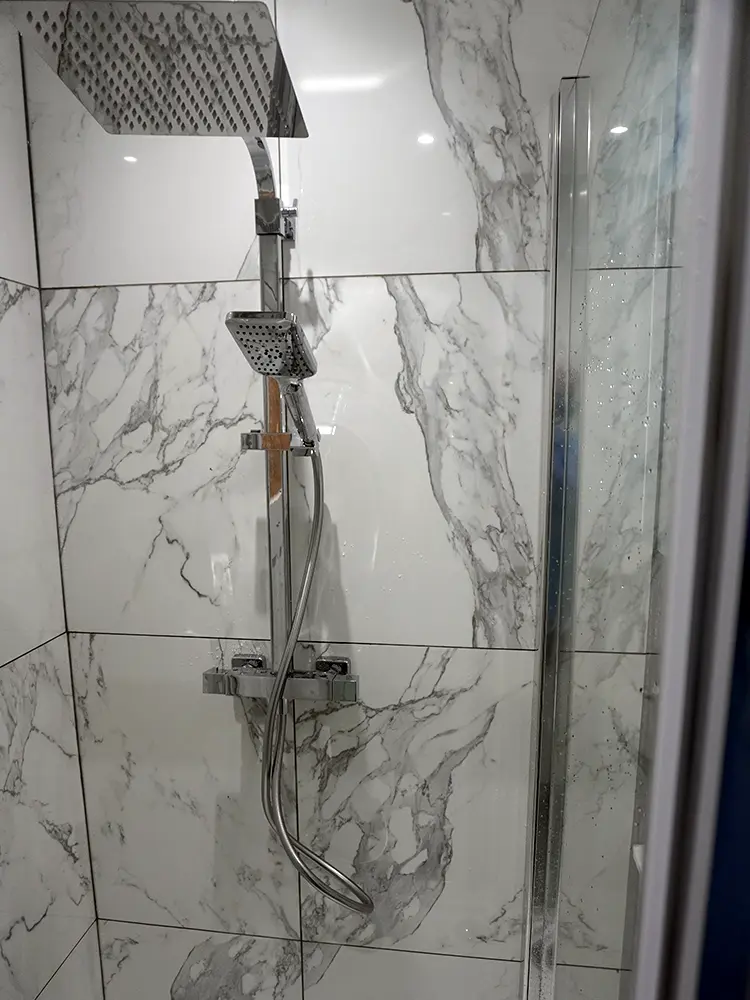 A bath-to-walk-in shower conversion in EN6, involving a full strip-out, reconfigured plumbing and electrics, waterproofing, tiling, and installation of modern sanitaryware for a clean, accessible finish.