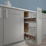 Pull out storage base units in a kitchen, are very practical and allow easy access to items such as tea, coffee and spice jars. Not only are the units a joy to have but with unit widths as small as 100mm wide, you could make full use of any available space, rather than having to use a filler.